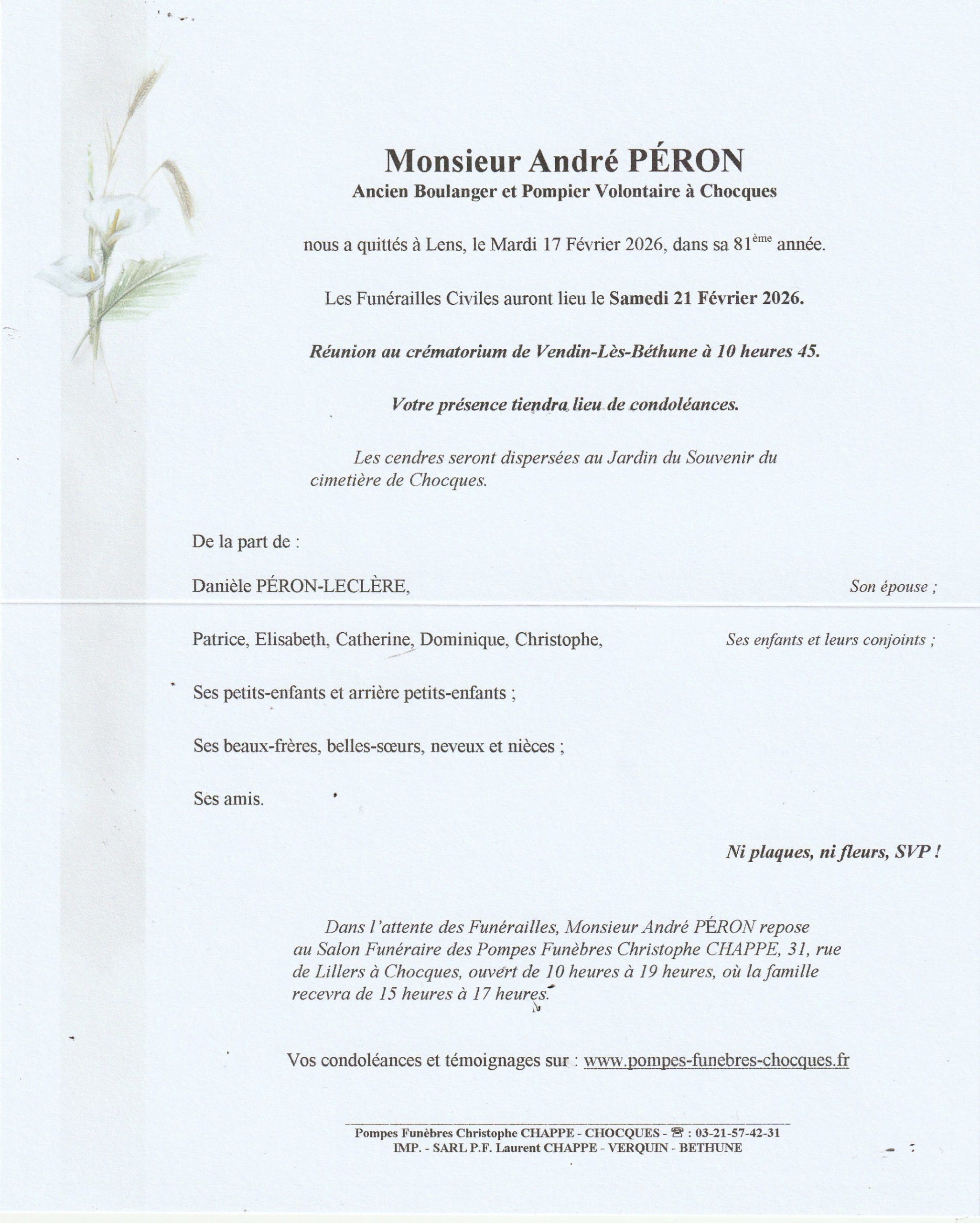 par | Fév 17, 2026 | avis de décès | 15 commentaires