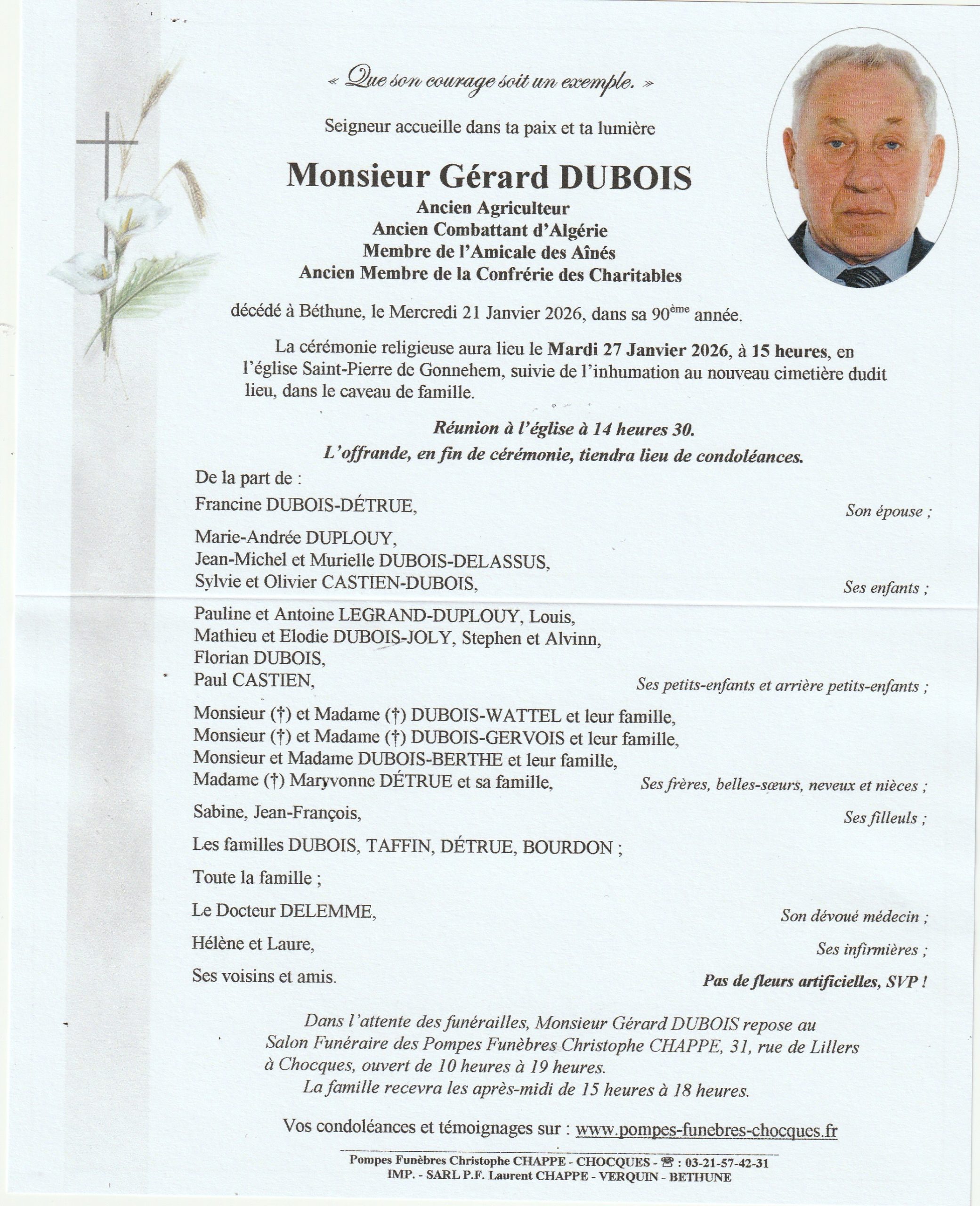 Monsieur et Madame Ducatez blondel présentent à la famille de Gérard Dubois
